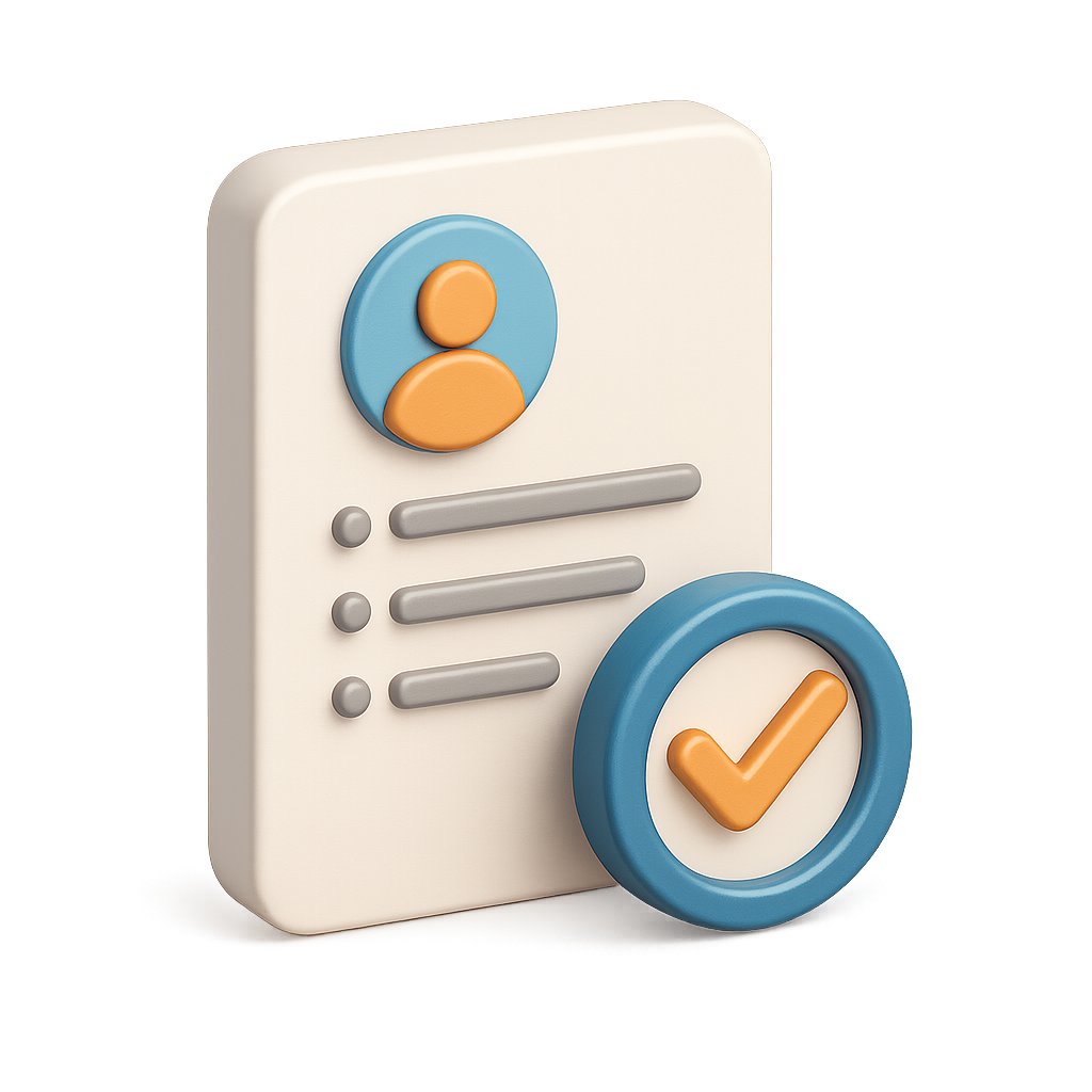 A vibrant 3D icon representing prospect qualification, featuring a document with user silhouette and checkmark elements, designed in an isometric style.