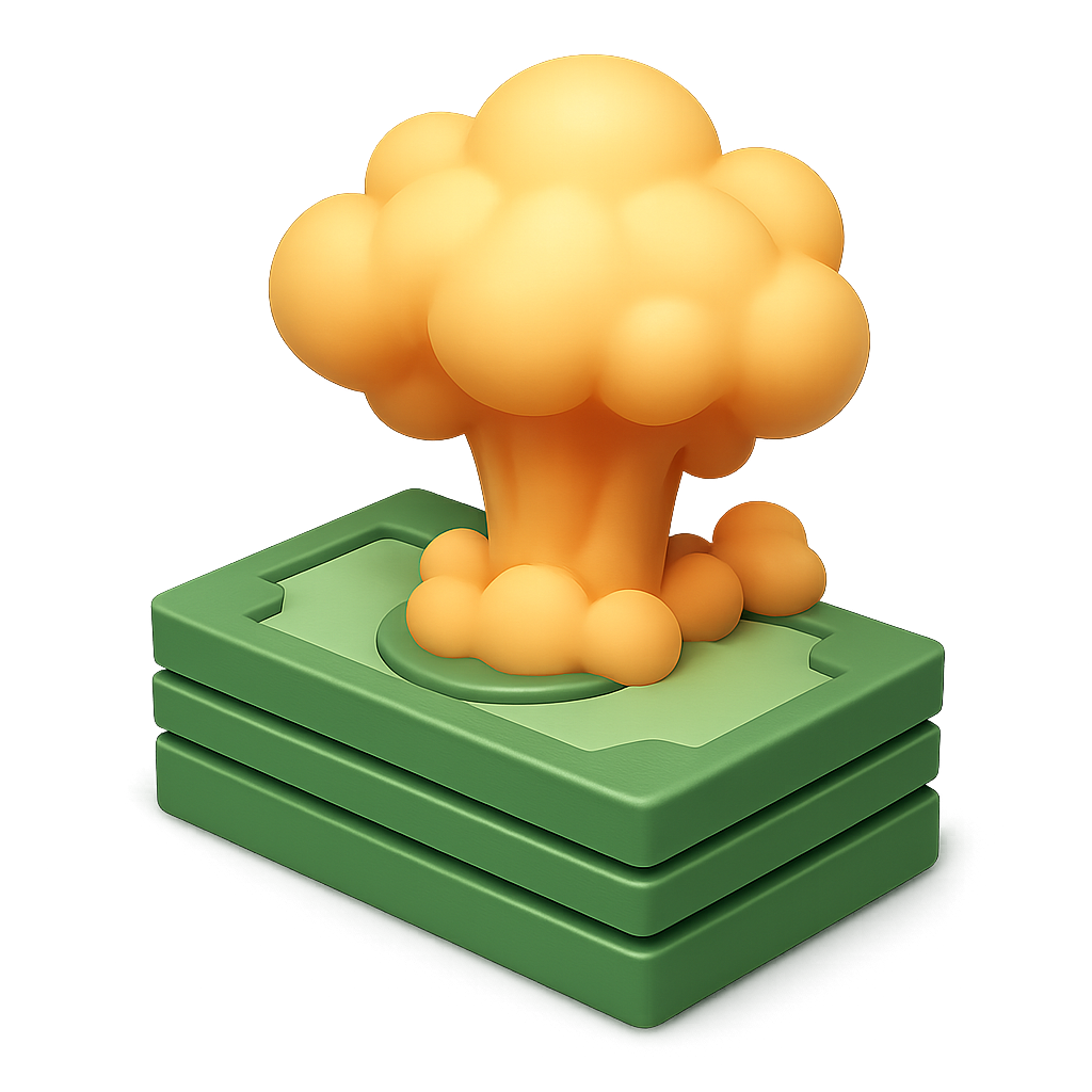 3D Explosive Money Icon with Smoke Effect