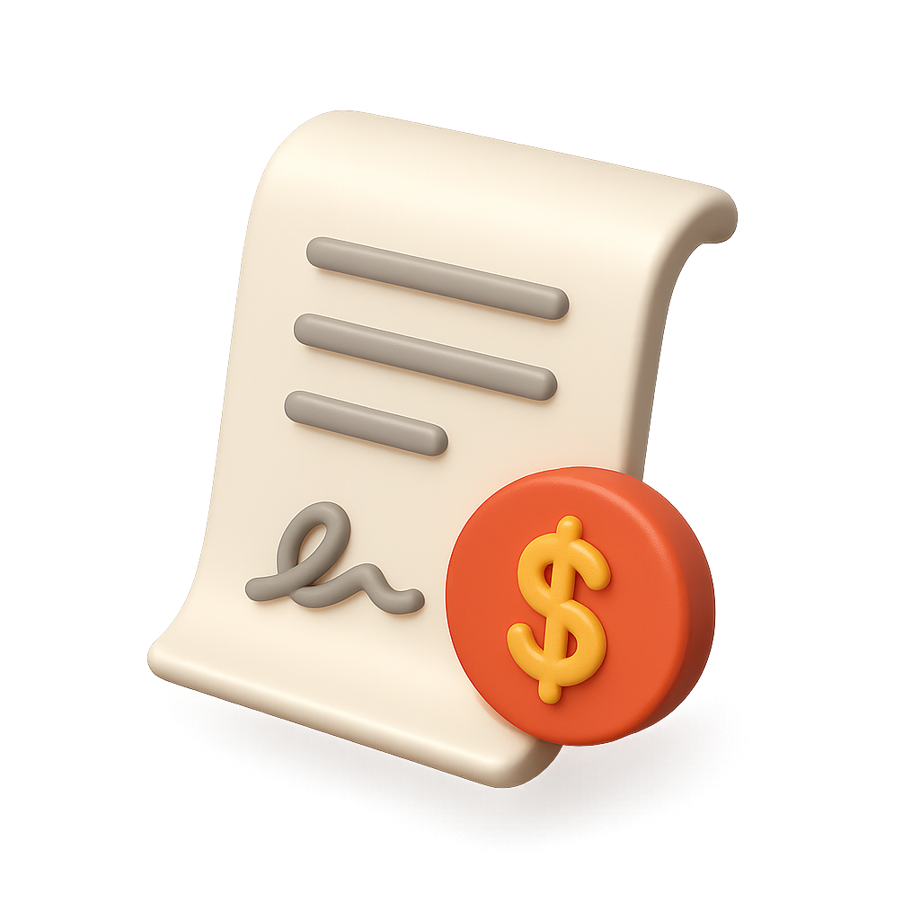 3D Icon of a Promissory Note with Dollar Sign