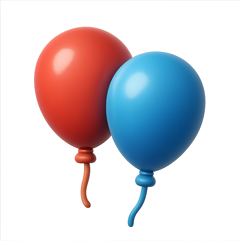 /Collection: /by davooda/Type: PNG/A visually appealing 3D icon featuring a red and a blue balloon, designed with a three-quarter view. The balloons exhibit a glossy, volumetric effect against a soft gradient background.