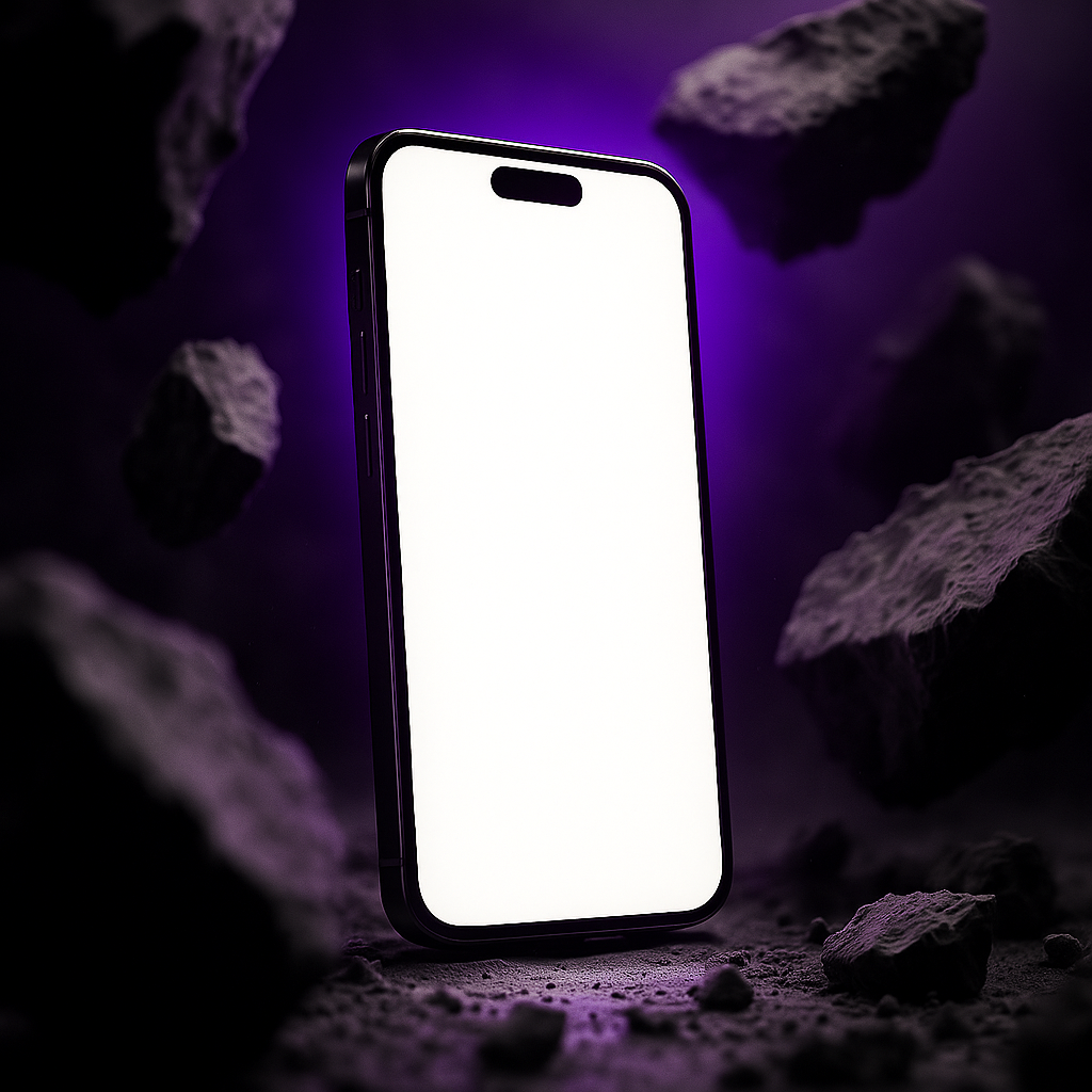 /Collection: /by davooda/Type: PNG/An innovative smartphone mockup set against a dramatic, rocky background. This design is ideal for showcasing app interfaces or technology promotions with a modern aesthetic.