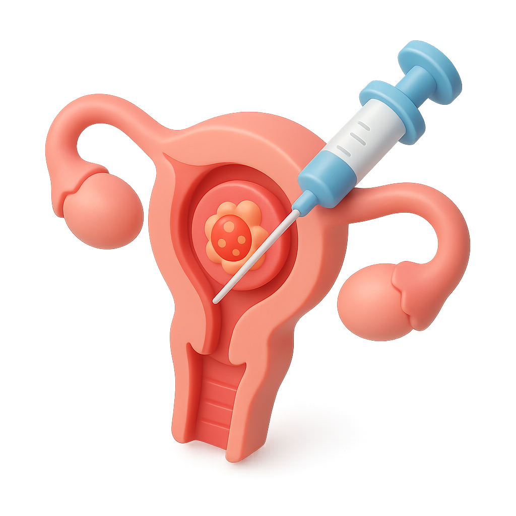 3D Embryo Implant Icon with Syringe and Uterus Design