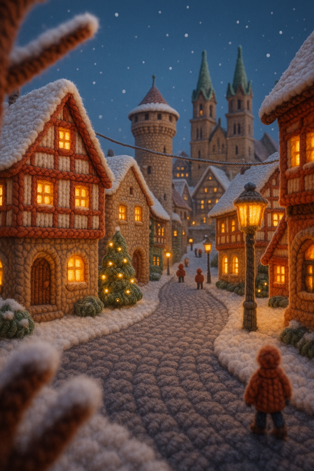 Whimsical Christmas Scene in Bremen with Woolen Textures