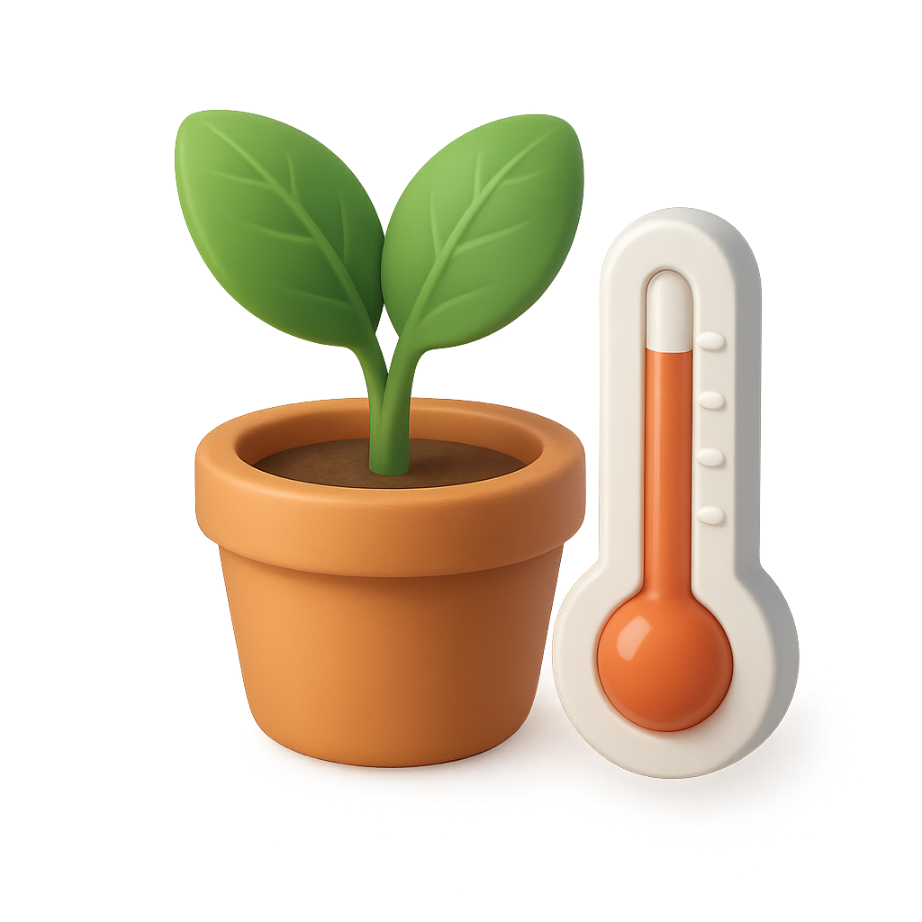 /Collection: /by davooda/Type: PNG/A vibrant 3D illustration featuring a green plant with two leaves in a terracotta pot alongside a thermometer. The design showcases a three-quarter view with a soft, volumetric feel.
