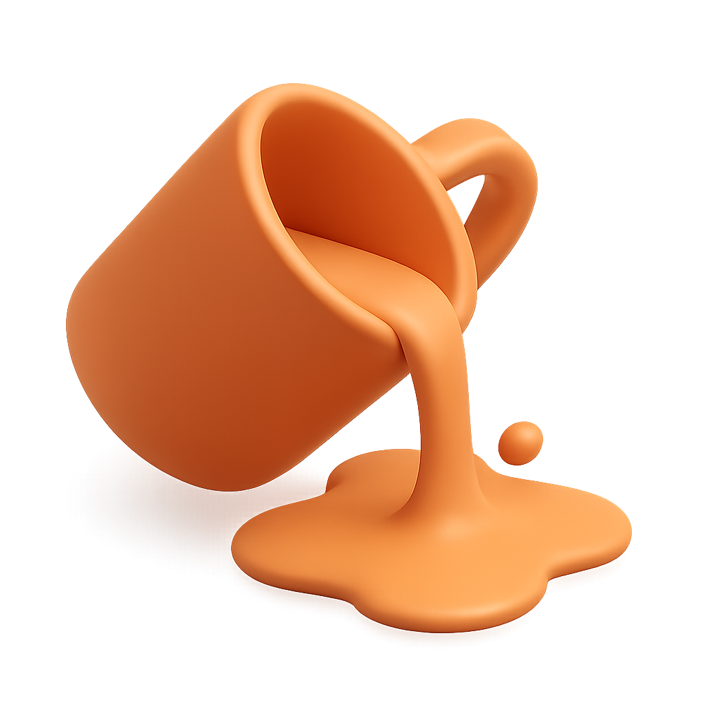 3D Icon of Spilled Cup with Liquid Overflowing