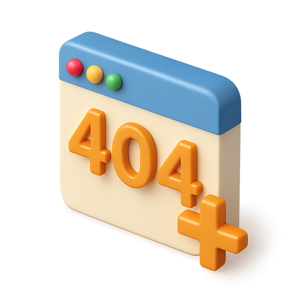/Collection: /by davooda/Type: PNG/A 3D representation of a '404 Page Not Found' error icon, featuring a browser window design with colorful buttons, rendered in a three-quarter isometric view.