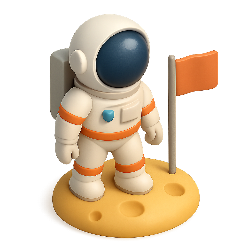 3D Astronaut Icon on Moon Surface with Flag