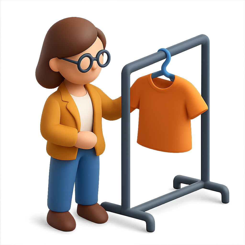 3D Icon of a Stylist with Clothing Display