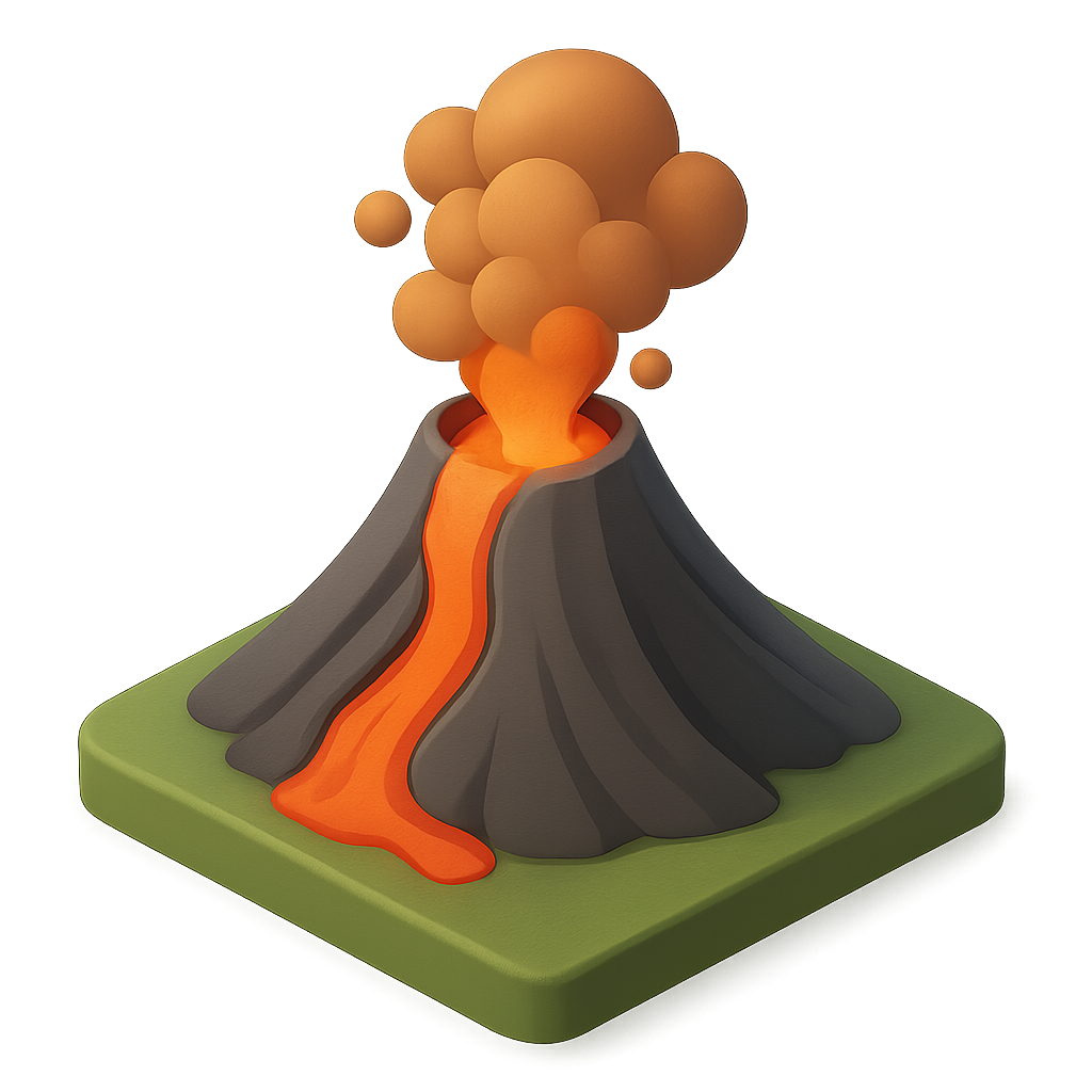3D Volcano Icon with Smoke and Lava Flow
