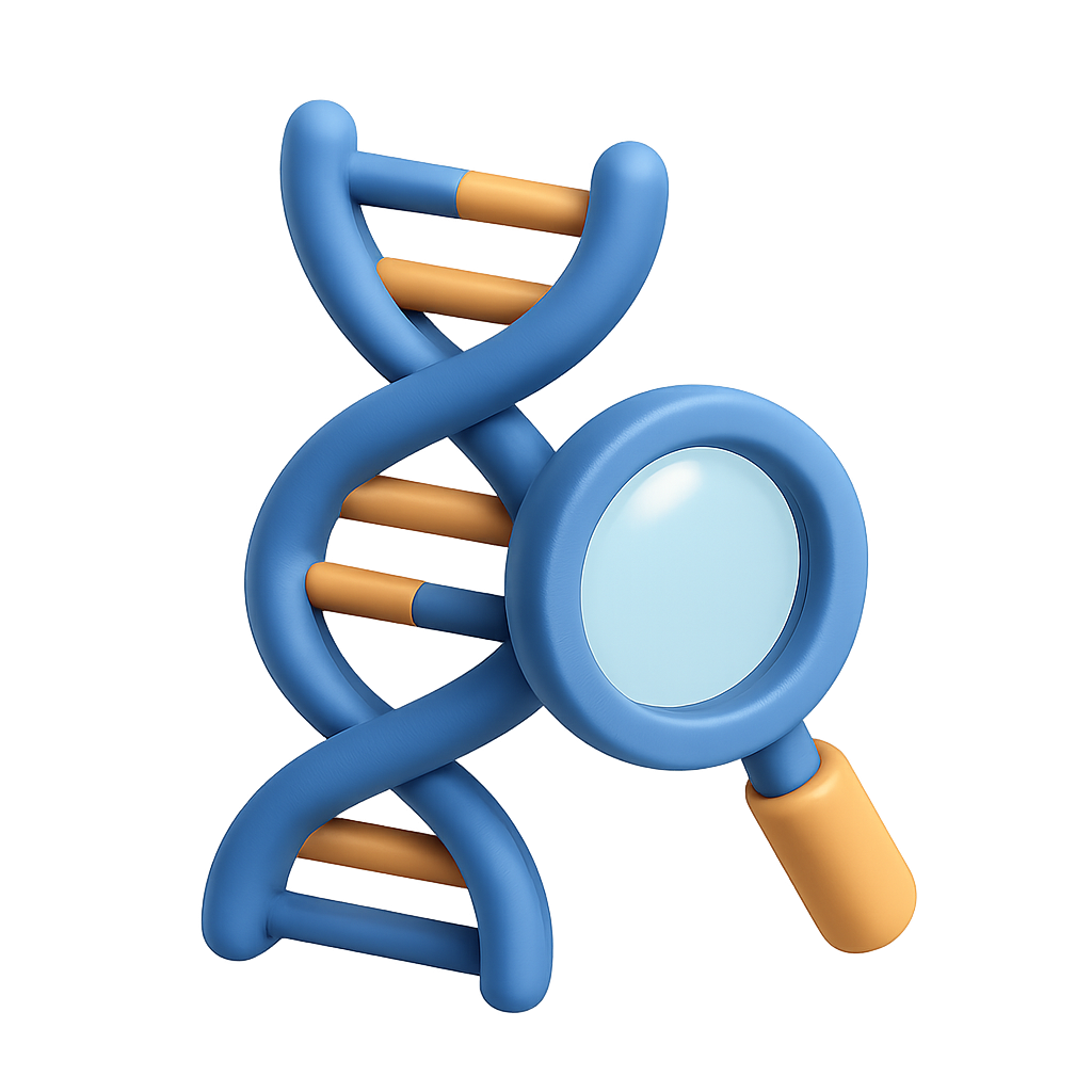 /Collection: /by davooda/Type: PNG/This image features a 3D representation of a DNA helix combined with a magnifying glass, showcasing a colorful design. The helix is viewed in a three-quarter perspective, giving it a volumetric feel against a transparent background.