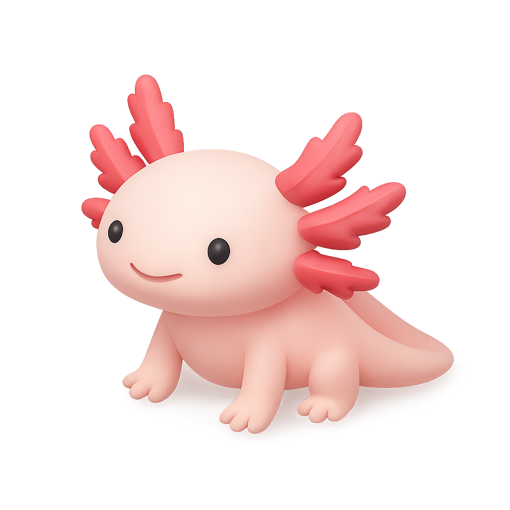 Cute 3D Axolotl Icon with Pink Gills and Isometric Design