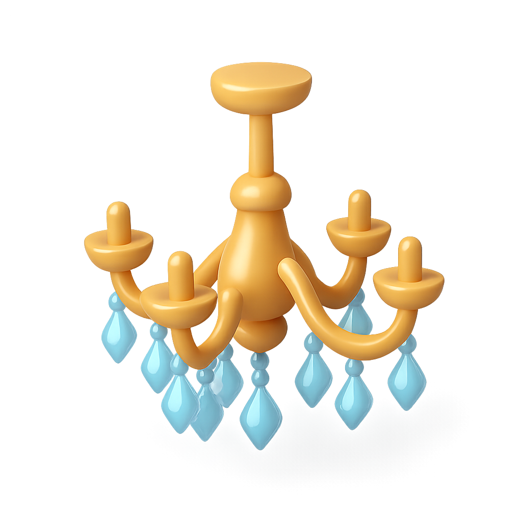 Stylish 3D Crystal Chandelier Icon with Volumetric Design