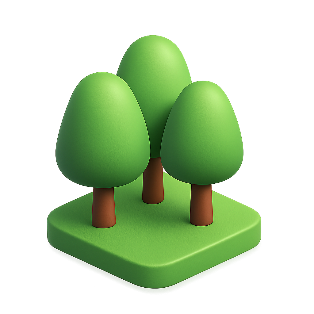 /Collection: /by davooda/Type: PNG/A visually appealing 3D isometric representation of three cartoonish green trees atop a green base, set against a dark gradient background. The trees feature smooth, rounded tops and brown trunks, giving a playful and vibrant look.