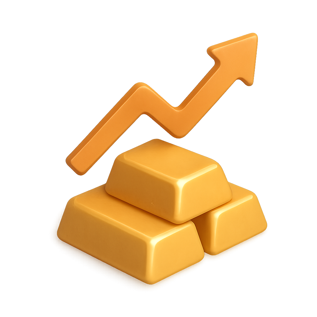 3D Icon of Gold Bars with Upward Trend Arrow