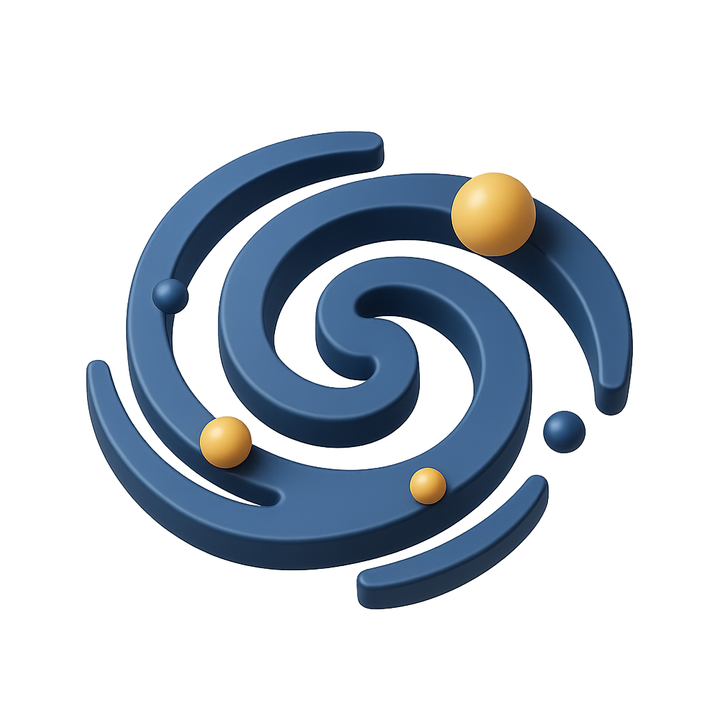 /Collection: /by davooda/Type: PNG/A 3D representation of a spiral galaxy, featuring smooth, curved lines in blue and yellow spherical accents. The icon has a transparent background and is presented in a three-quarter isometric view.