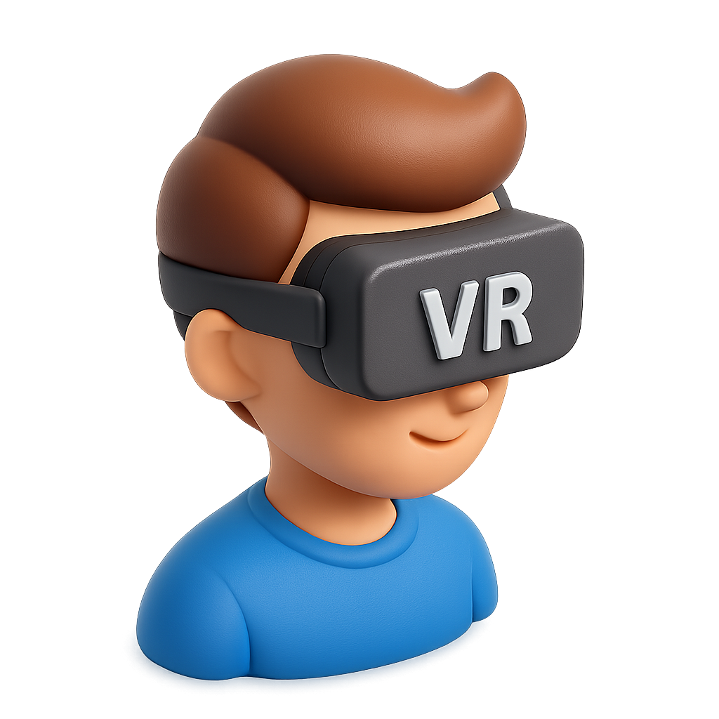 /Collection: /by davooda/Type: PNG/A 3D icon featuring a young male avatar wearing a VR headset, depicted in a three-quarter view. The design emphasizes a playful, volumetric style with a transparent background.