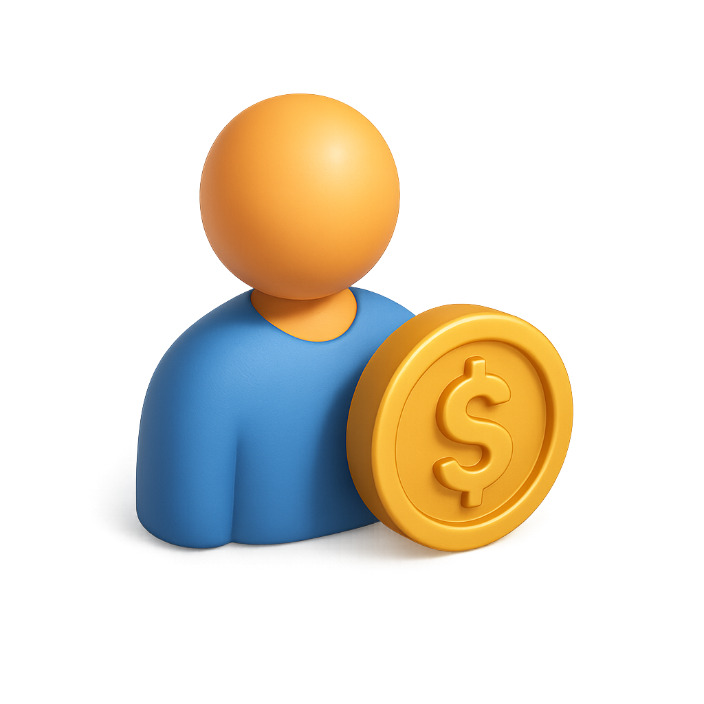 /Collection: /by davooda/Type: PNG/A stylized 3D icon depicting a person silhouette next to a dollar coin, emphasizing the concept of customer lifetime value. The design features vibrant colors and a three-quarter view for depth.