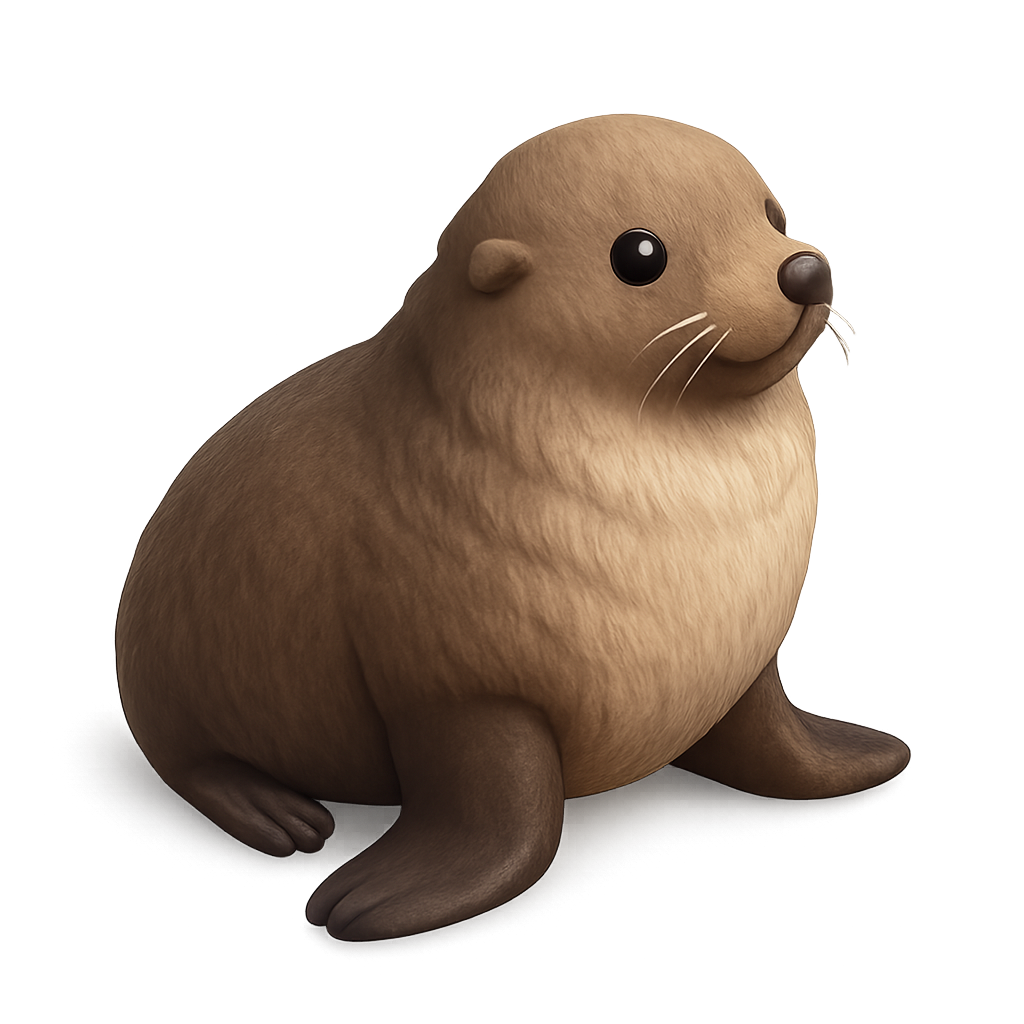 A charming 3D icon of a fur seal with a thick coat, depicted in a three-quarter view against a transparent background, showcasing its volumetric features.