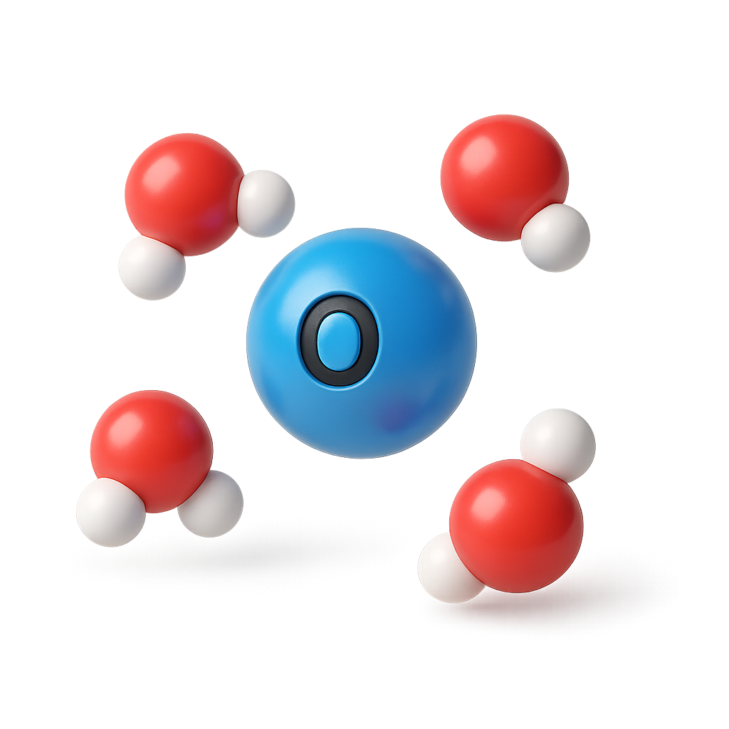 3D Oxygen Molecule Icon with Surrounding Atoms