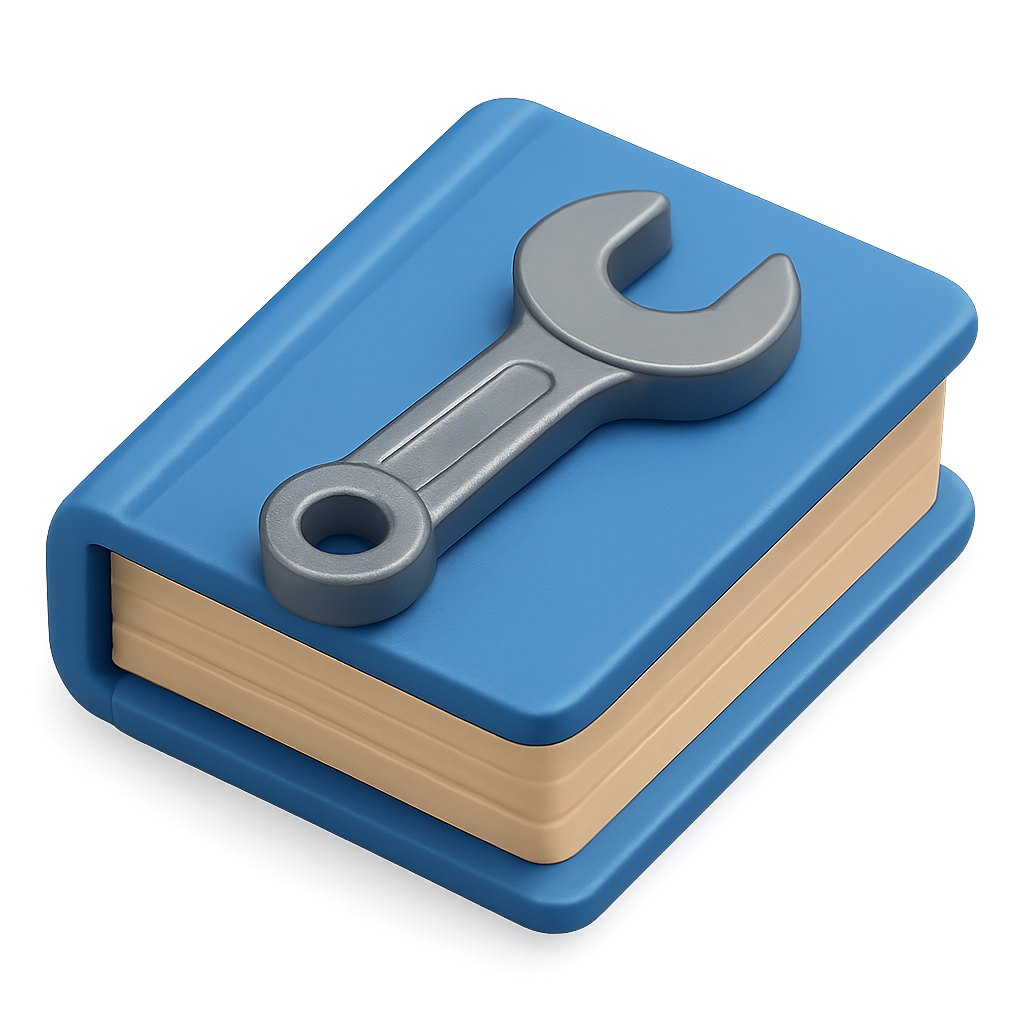 3D Book and Wrench Icon with Volumetric Design