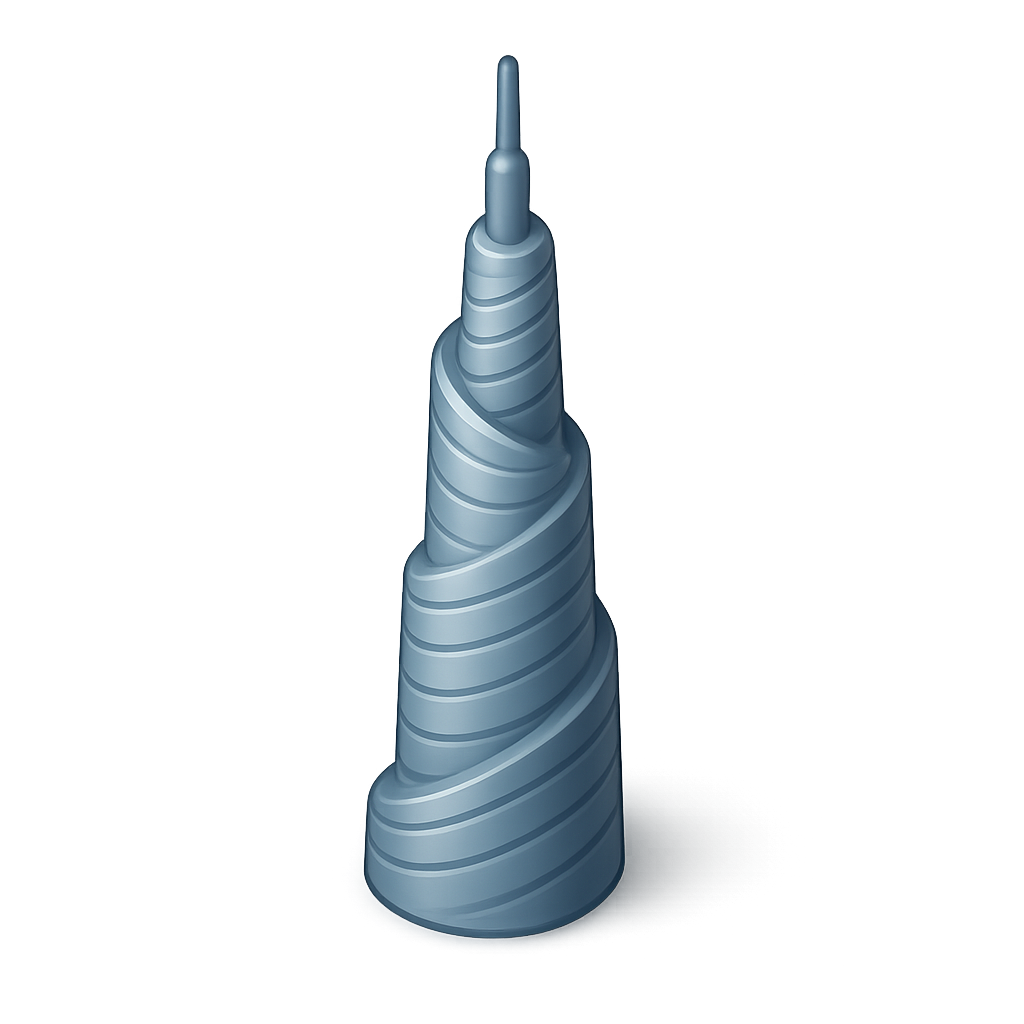 Stylized 3D Icon of Shanghai Tower with Spiral Design