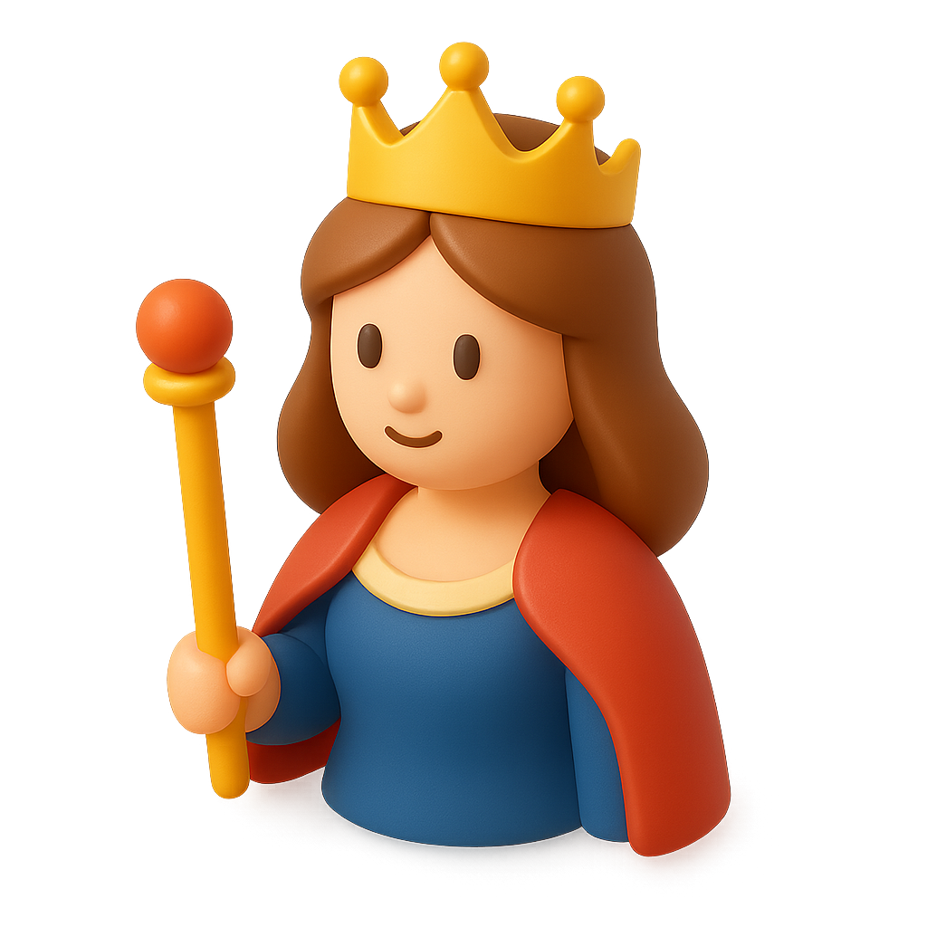 Stylized 3D Queen Icon with Scepter in Isometric View