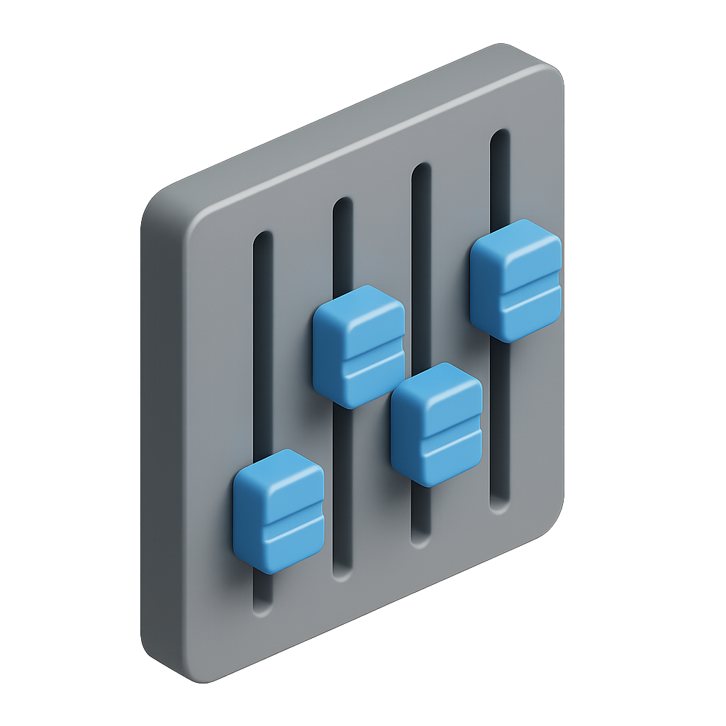 Stylish 3D Audio Mixer Icon with Sliders and Controls