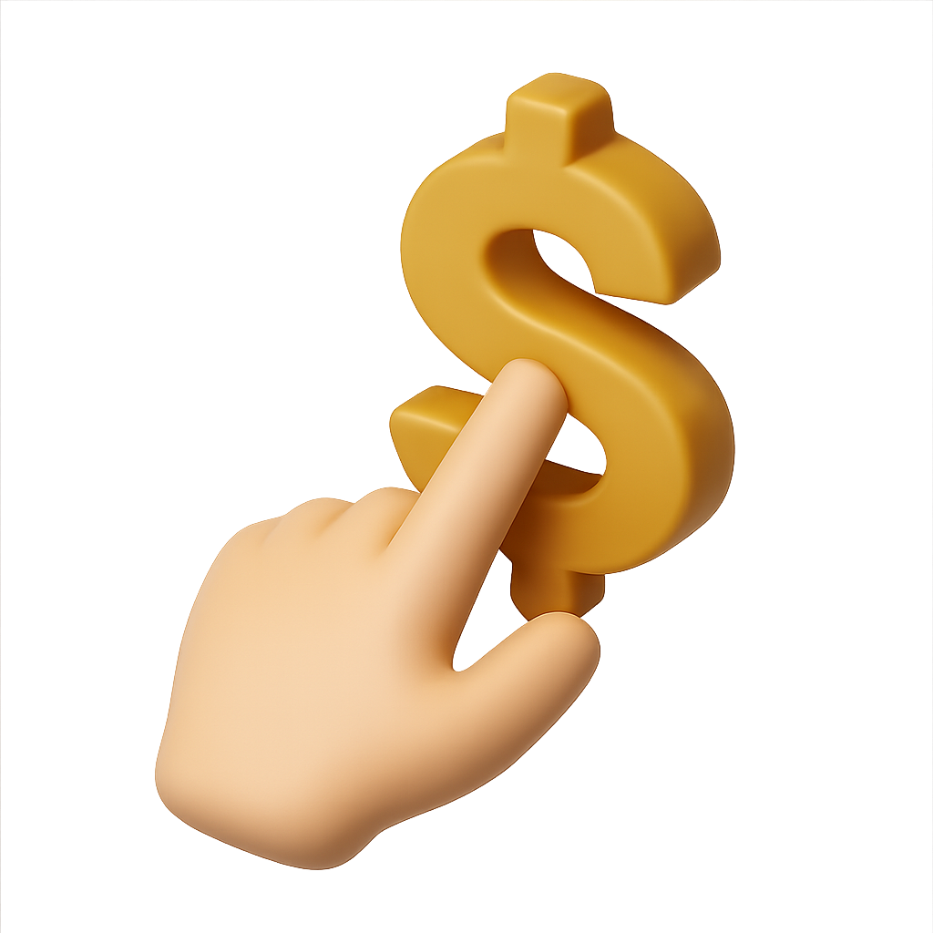 3D Icon of a Hand Pressing a Dollar Sign