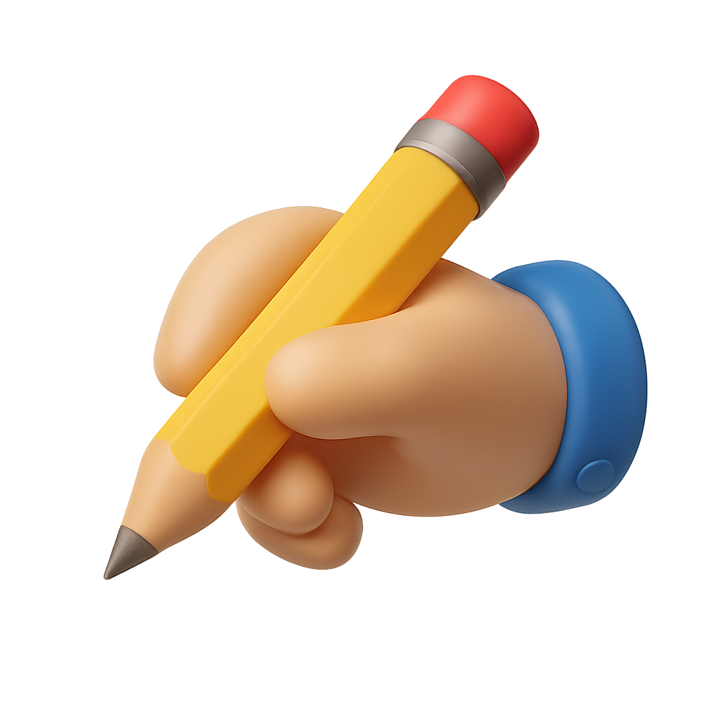 3D Hand Holding a Pencil Icon for Creative Use