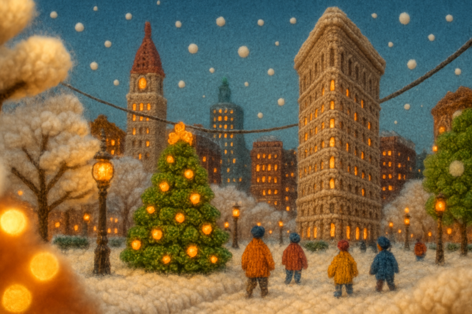 Charming Winter Scene in New York with Festive Atmosphere
