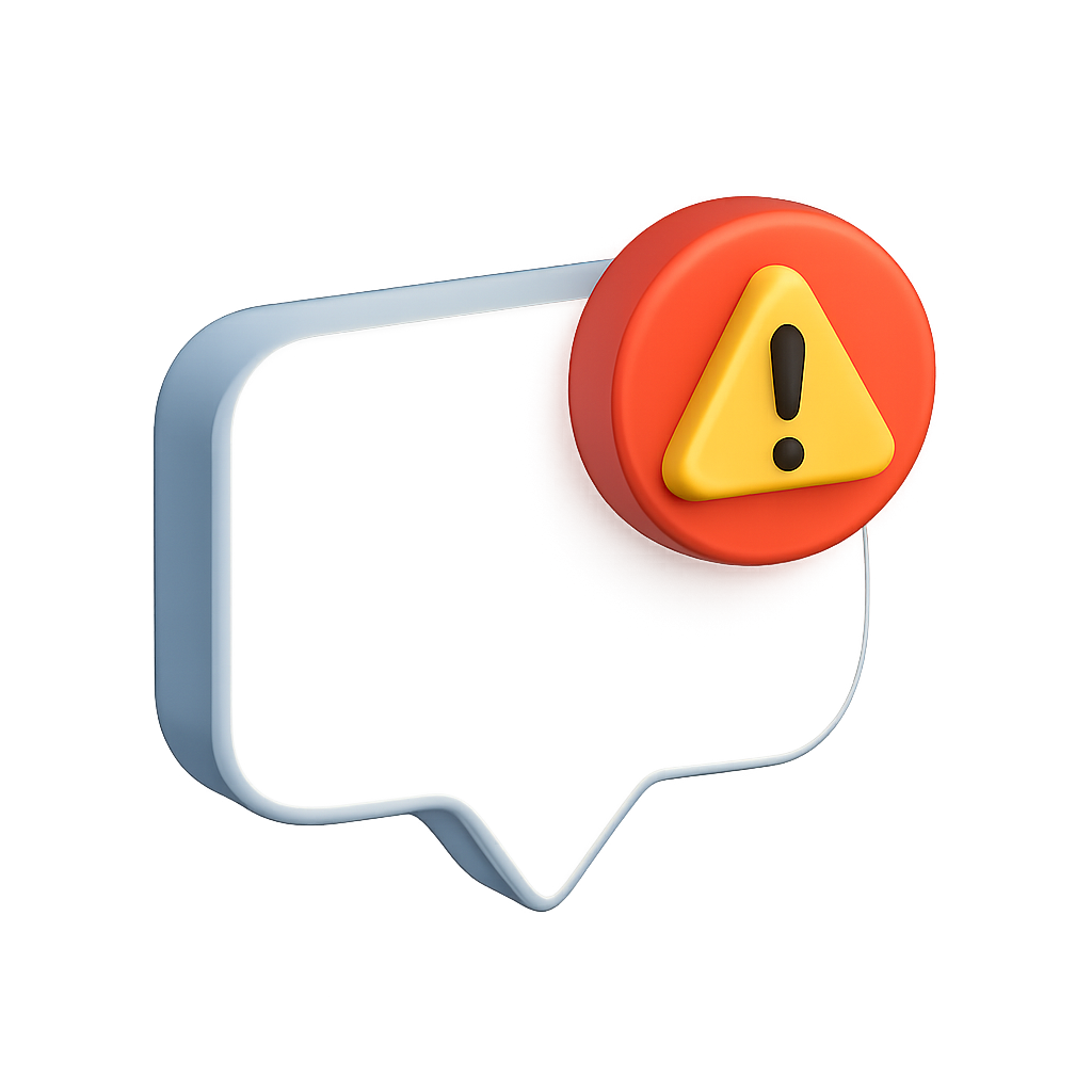 /Collection: /by davooda/Type: PNG/A three-dimensional alert notification icon featuring a speech bubble with a red alert symbol and yellow exclamation mark. The design has a transparent background and is shown in a three-quarter view.