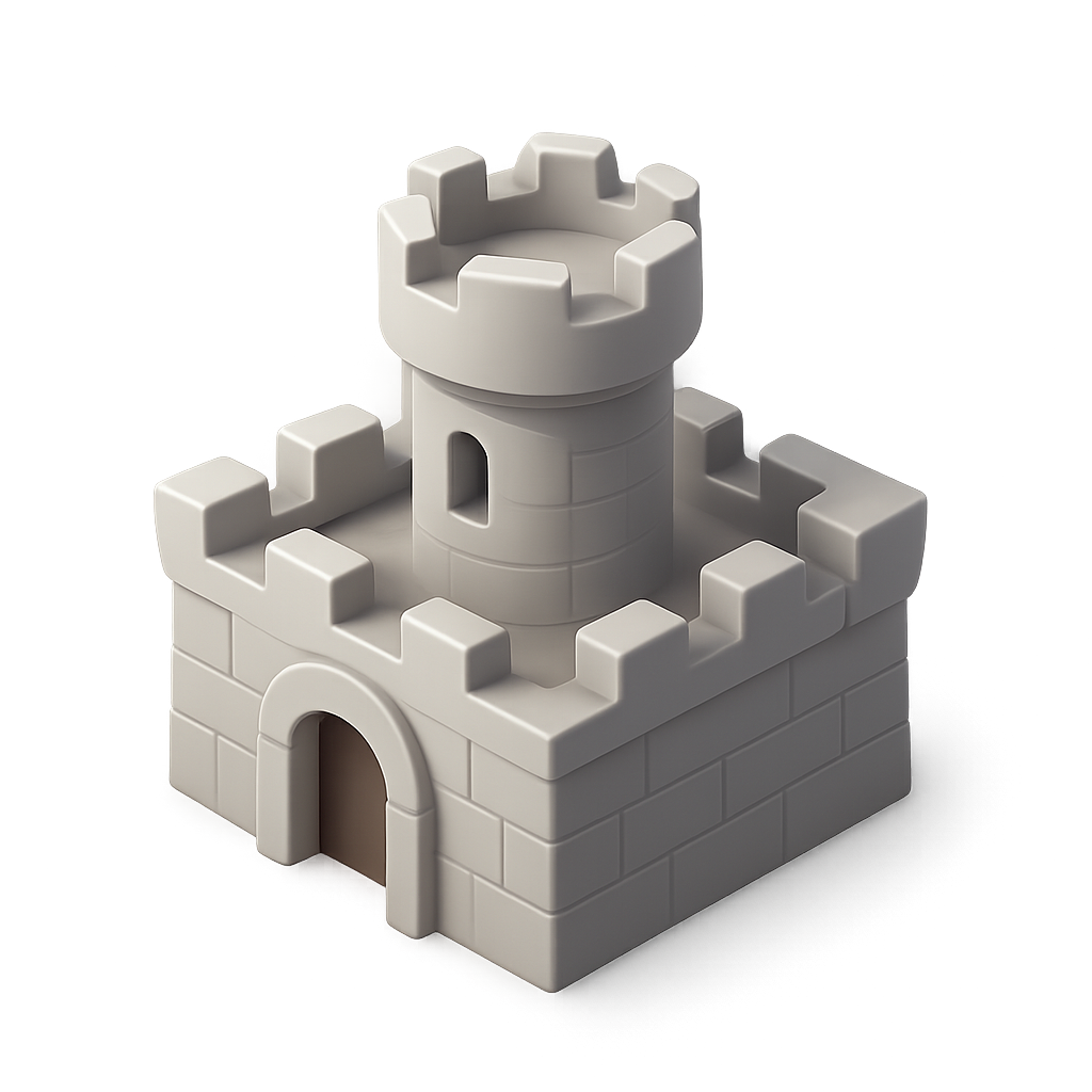 Stylized 3D Fortress Icon with Isometric View