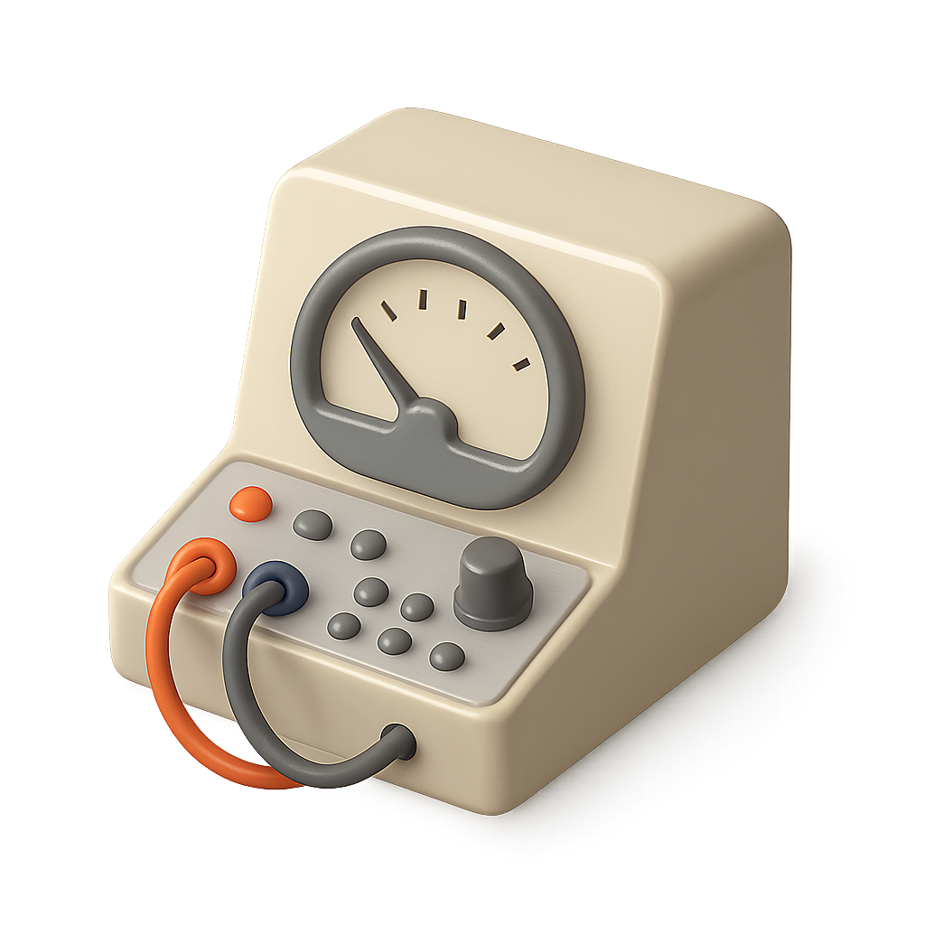 /Collection: /by davooda/Type: PNG/A sleek 3D icon of an analog computer, featuring a gauge and colorful wires. Designed in a three-quarter view with a transparent background, showcasing its volumetric and isometric details.