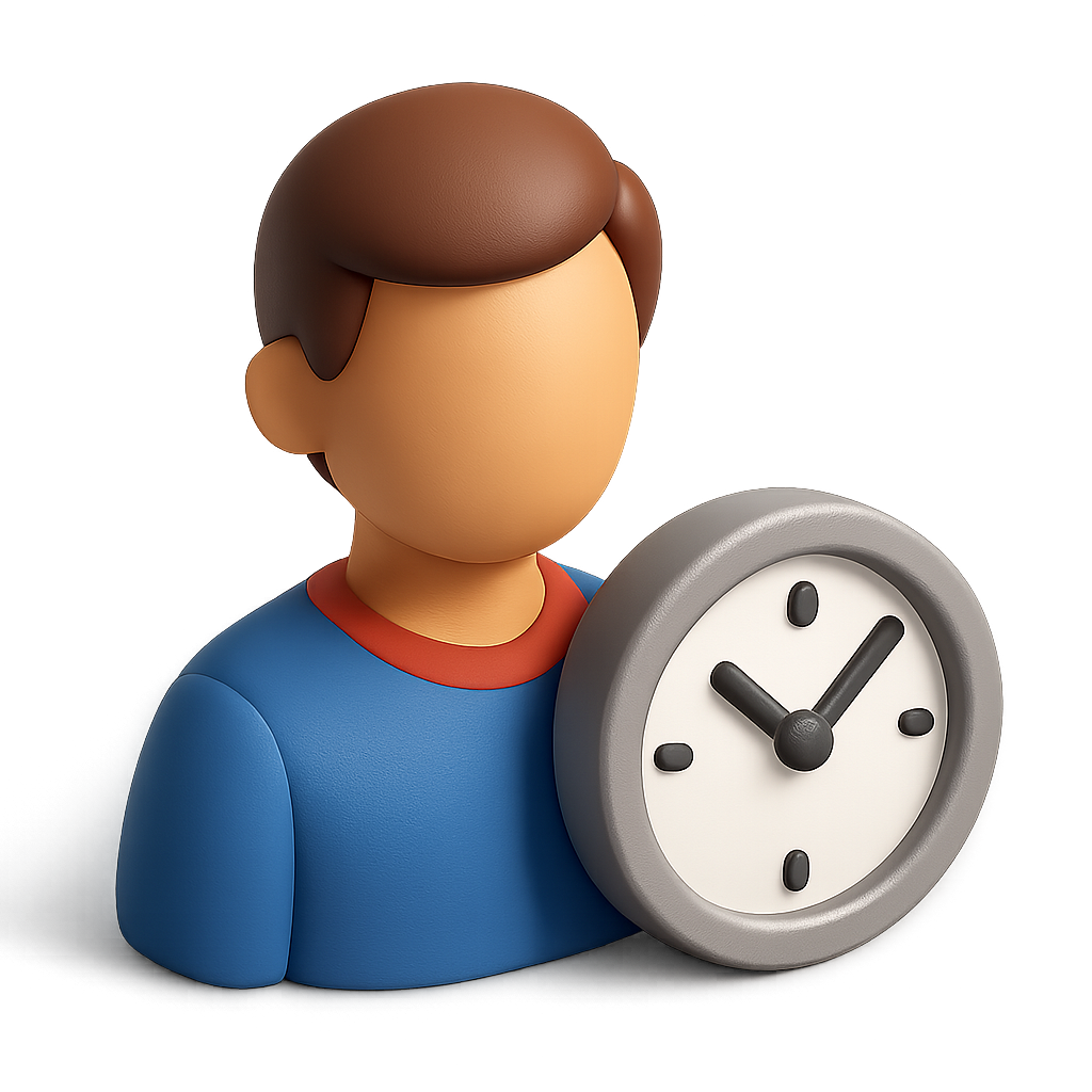 /Collection: /by davooda/Type: PNG/A stylized 3D icon featuring a person in a blue shirt holding a clock. The design has a transparent background and showcases a three-quarter view with a volumetric feel.