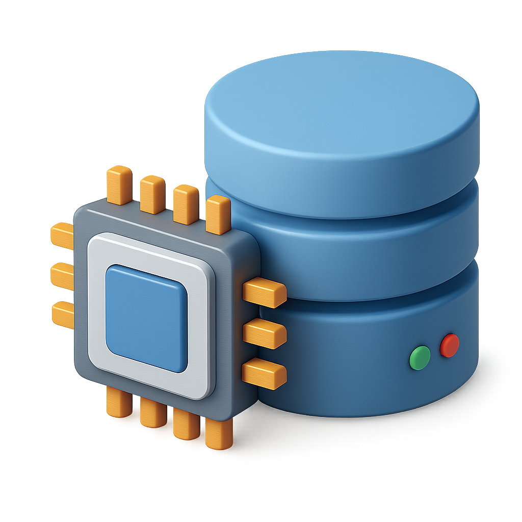 Stylized 3D Storage Processor Icon with Database Elements
