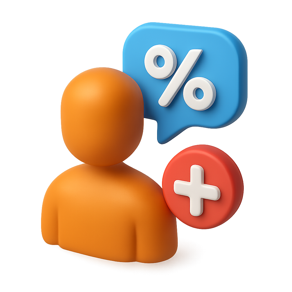 3D Icon Featuring Person, Percentage, and Chat Bubble