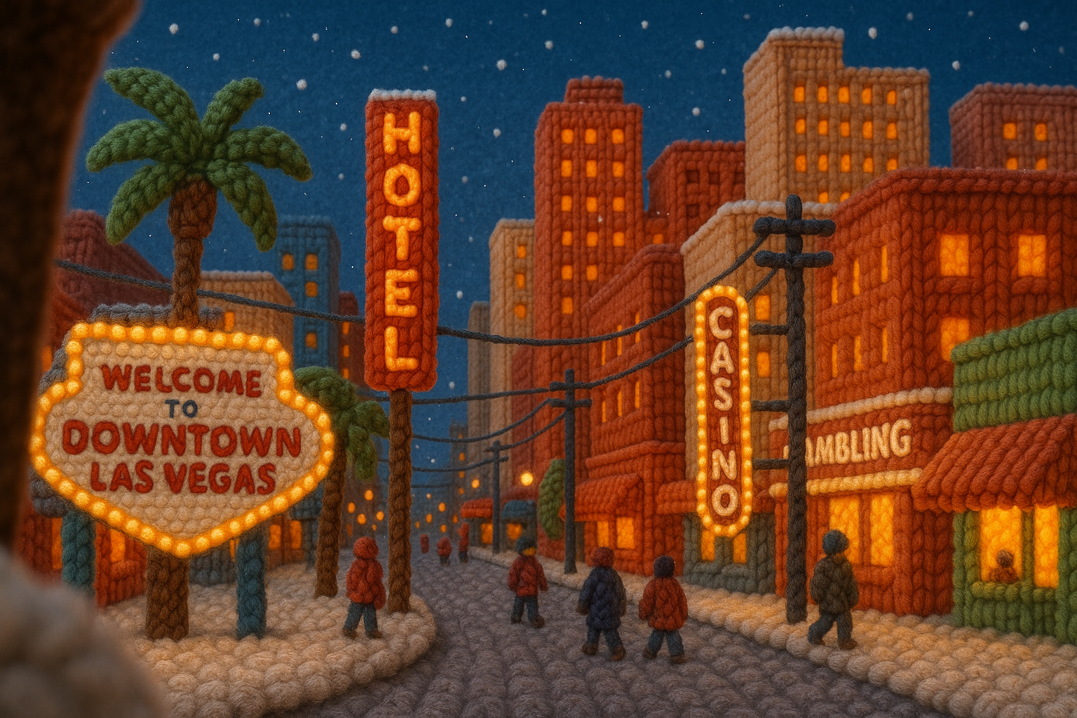 Knitted Downtown Las Vegas with a Cozy Holiday Atmosphere
