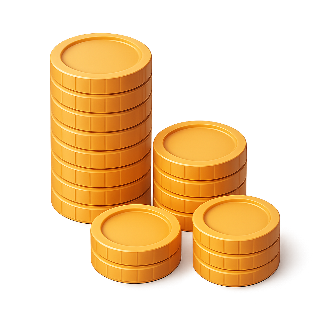 /Collection: /by davooda/Type: PNG/A visually striking 3D representation of a decreasing stack of golden coins, showcasing a transparent background and a three-quarter isometric view. The coins have a glossy finish, enhancing their volumetric appearance.