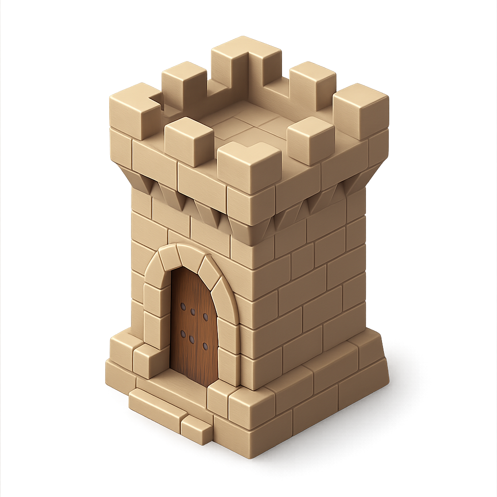 Stylized 3D Donjon Tower Icon in Isometric View
