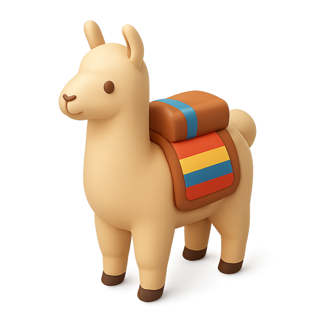 3D Andean Llama Icon with Pack and Isometric View