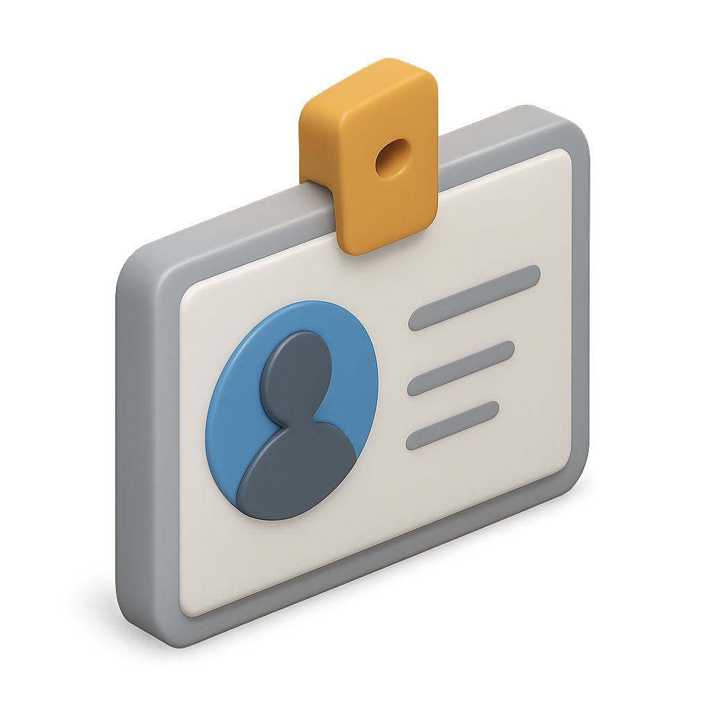 A three-dimensional identification card featuring a person's silhouette in a simple design. The card is presented in a three-quarter view with a volumetric feel.
