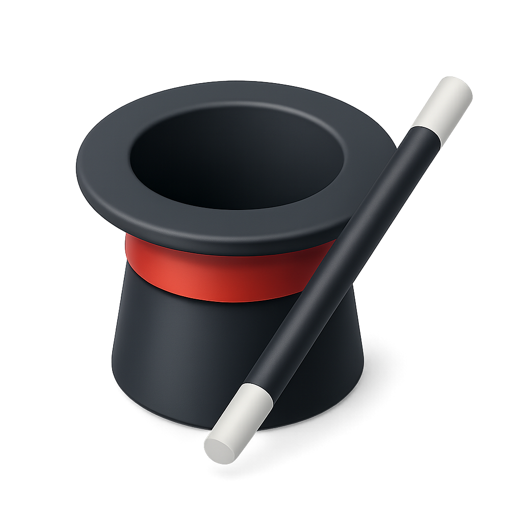 Stylized 3D Magician's Hat and Wand Icon