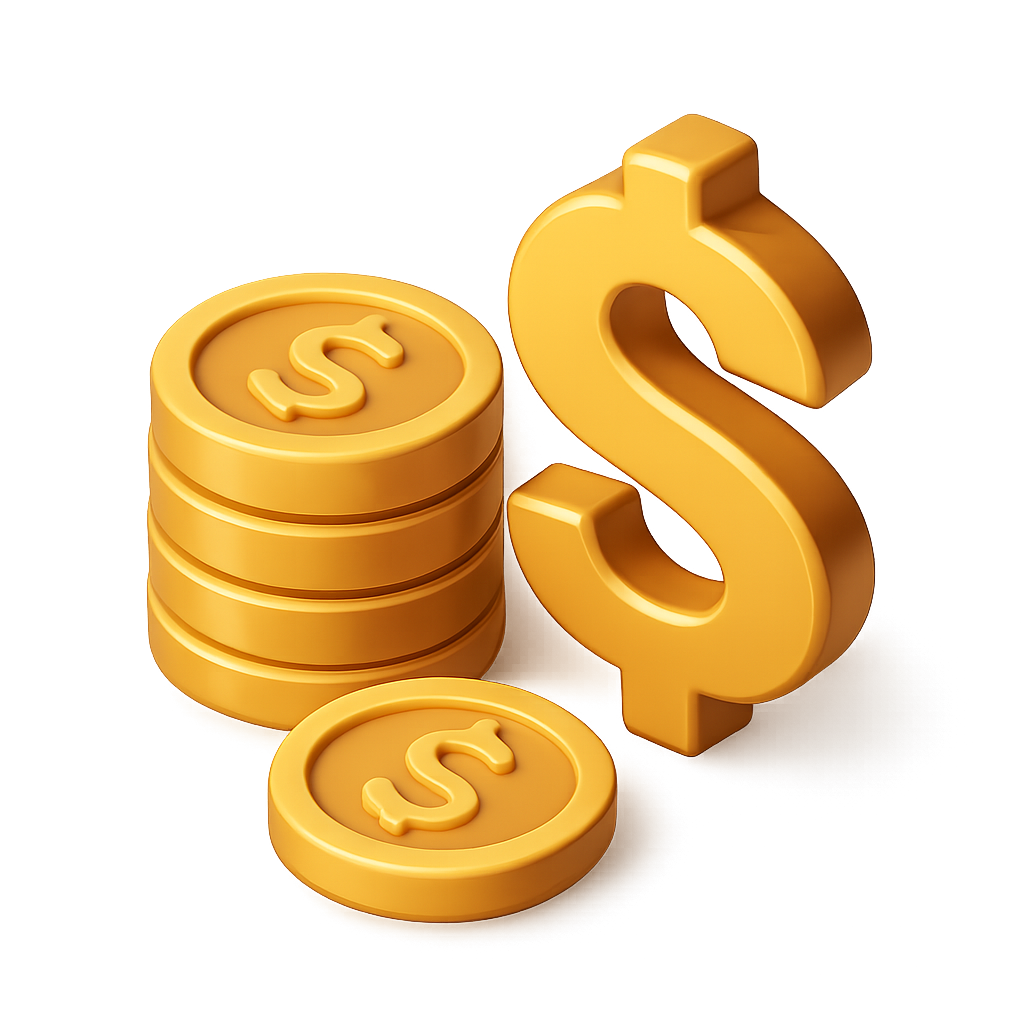 3D Currency Icon with Coins and Dollar Sign