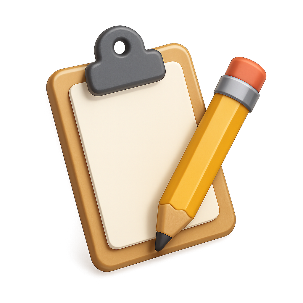 Stylish 3D Clipboard Icon with Pencil Design