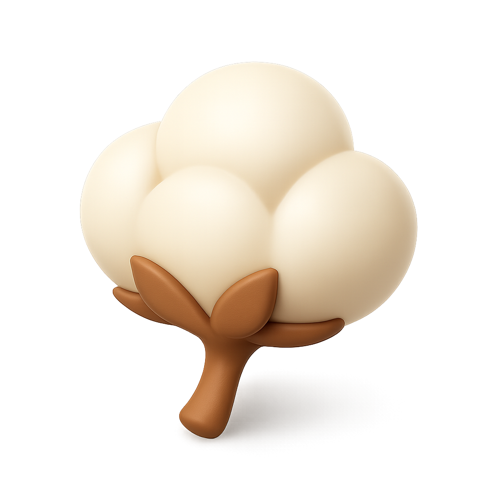 Stylized 3D Cotton Plant Icon with Isometric Design