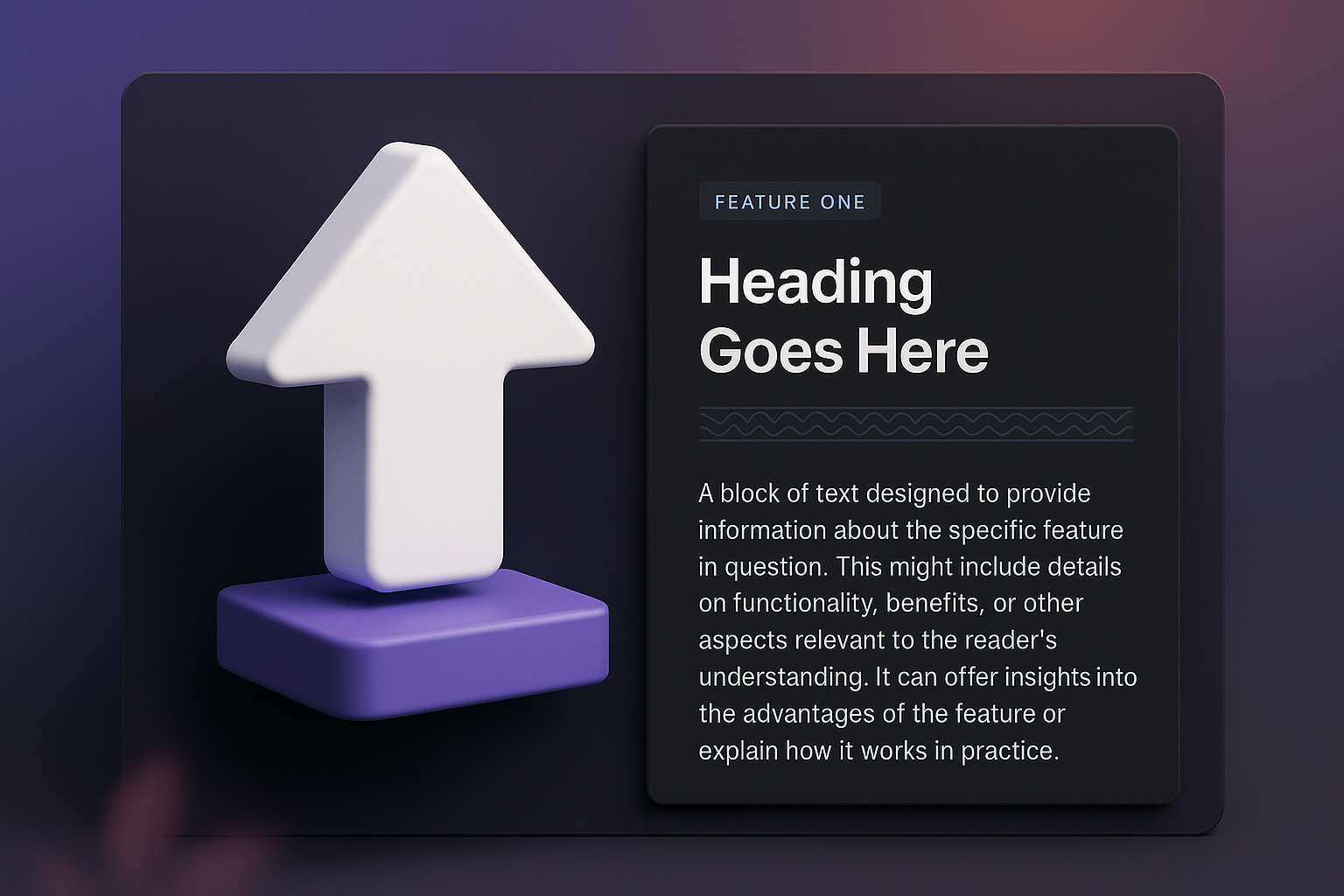 A modern 3D arrow icon accompanied by a text block, designed for showcasing features or benefits in a visually appealing way.