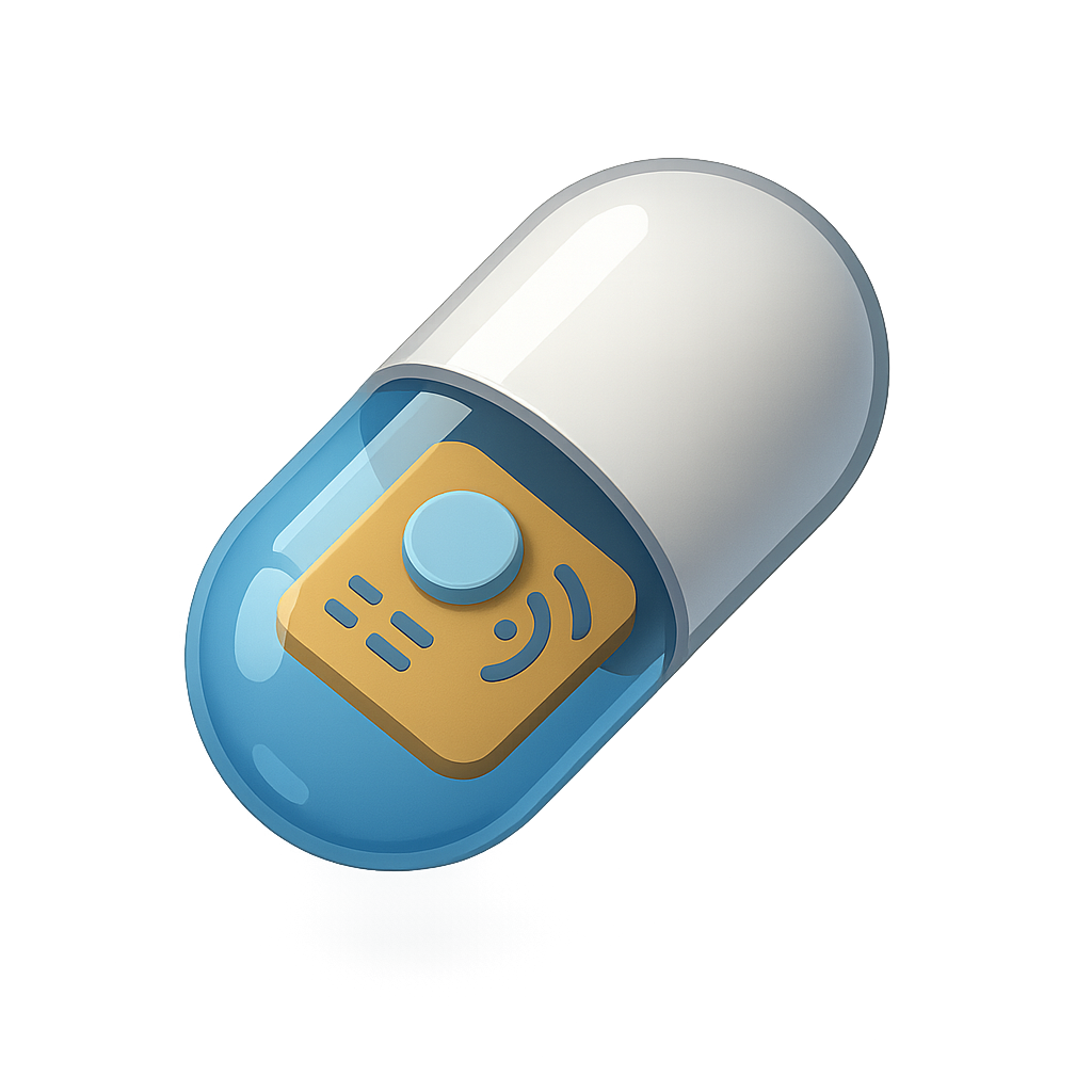 3D Swallowable Sensor Capsule Icon in Isometric View