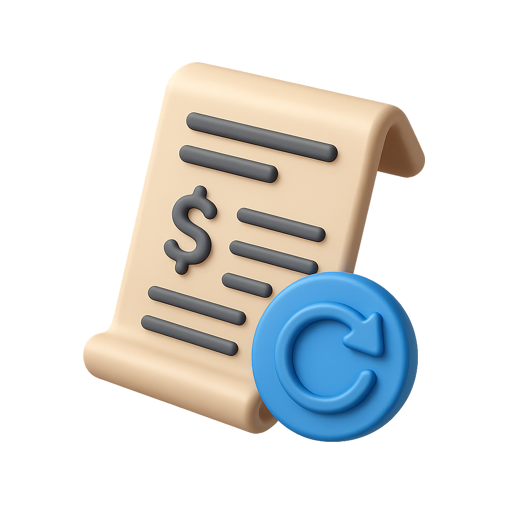 3D Subscription Icon with Recurring Bill and Refresh Symbol