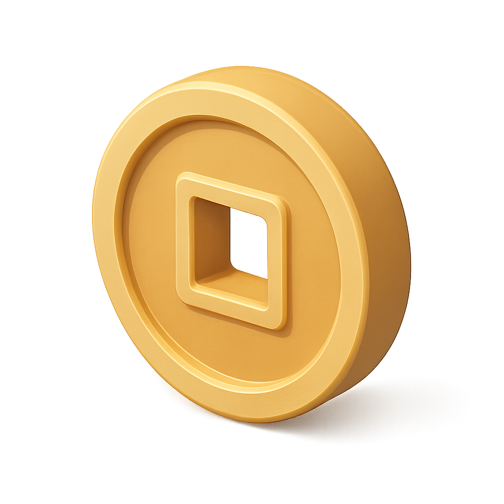 Stylized 3D Chinese Coin Icon in Golden Hue