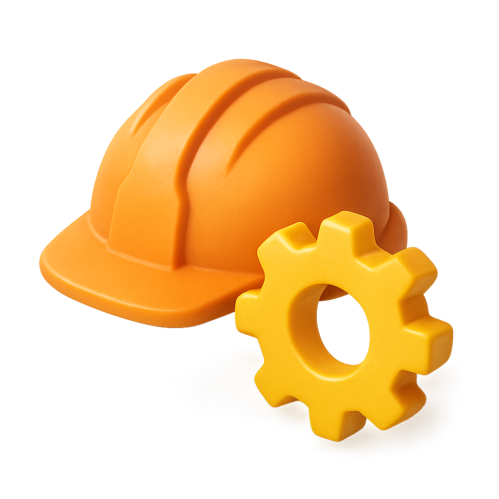 3D Construction Helmet and Gear Icon